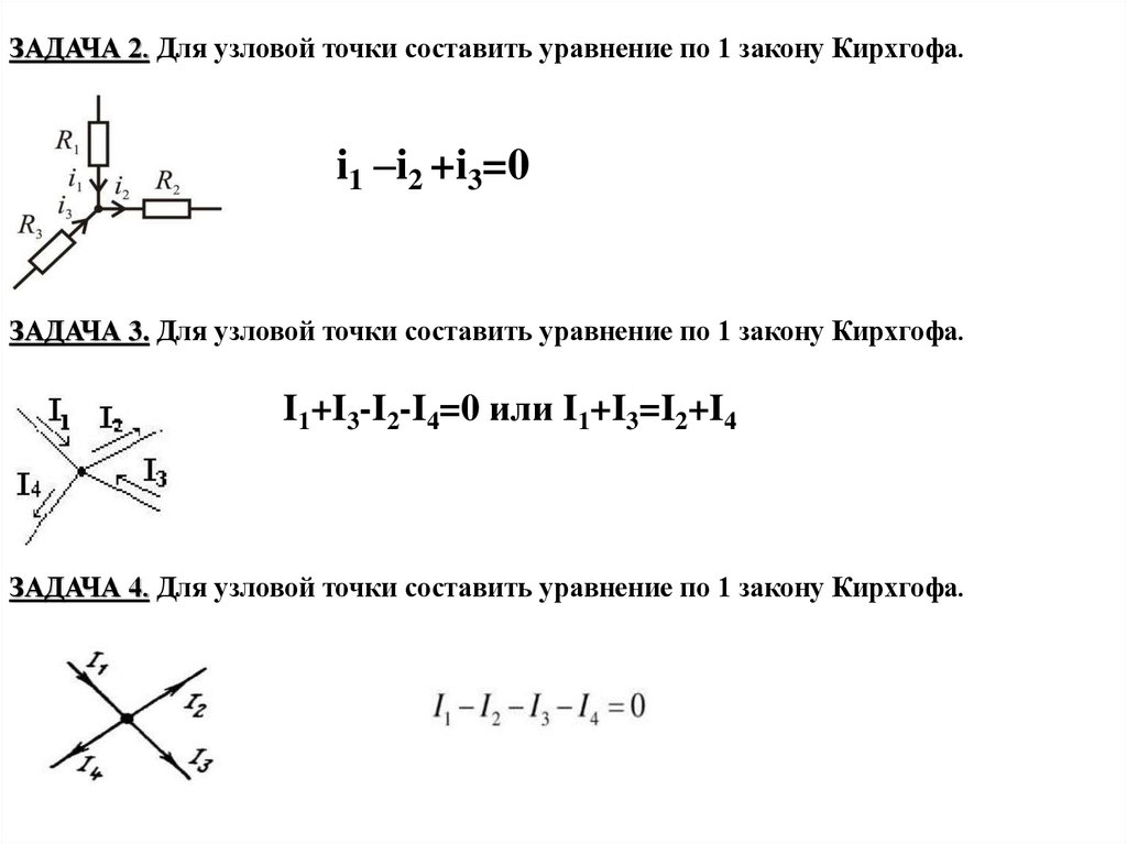 ЗАДАЧА 4. Для узловой точки составить уравнение по 1 закону Кирхгофа.