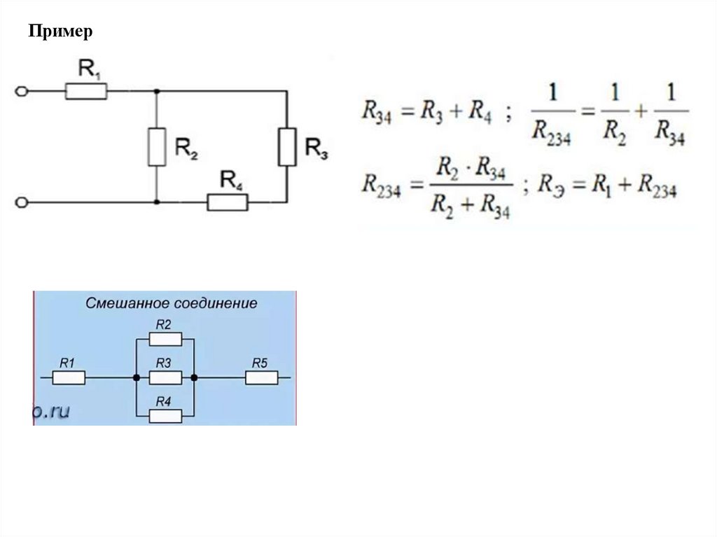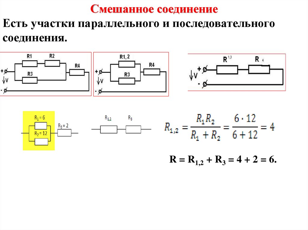 Смешанное соединениеЕсть участки параллельного и последовательного