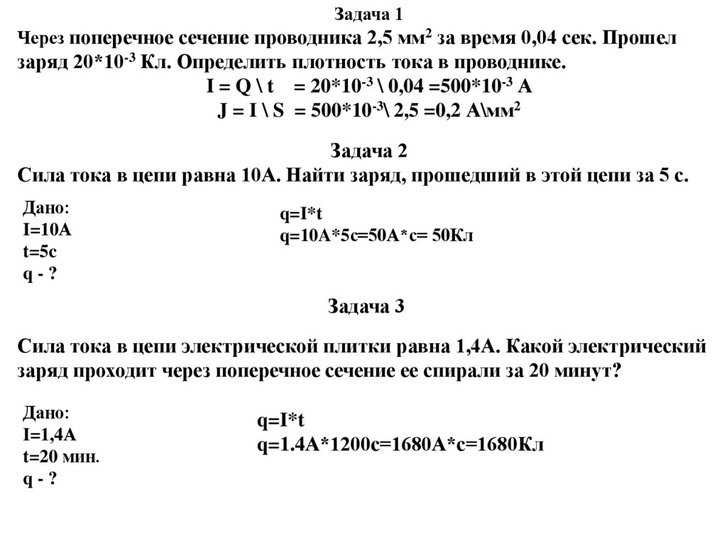 Задача 1Через поперечное сечение проводника 2,5 мм2 за время 0,04 сек. Прошел