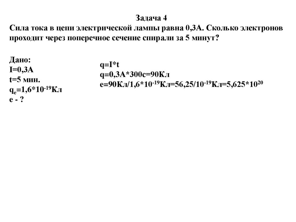 Задача 4Сила тока в цепи электрической лампы равна 0,3А. Сколько электронов