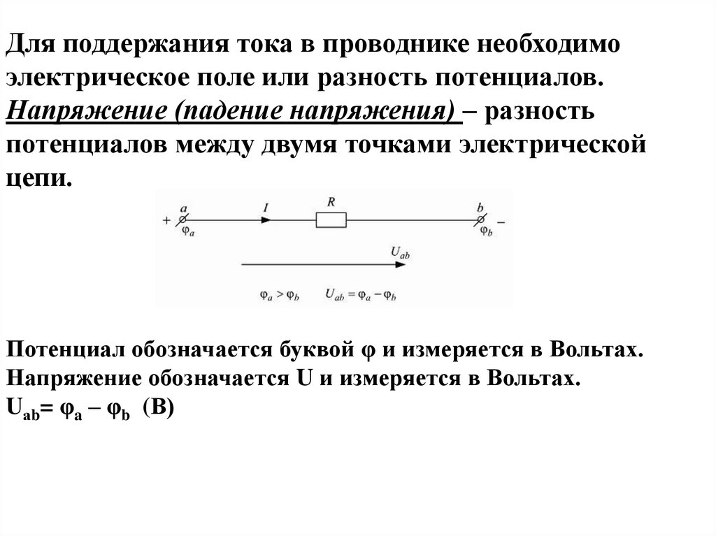 Для поддержания тока в проводнике необходимоэлектрическое поле или разность потенциалов.