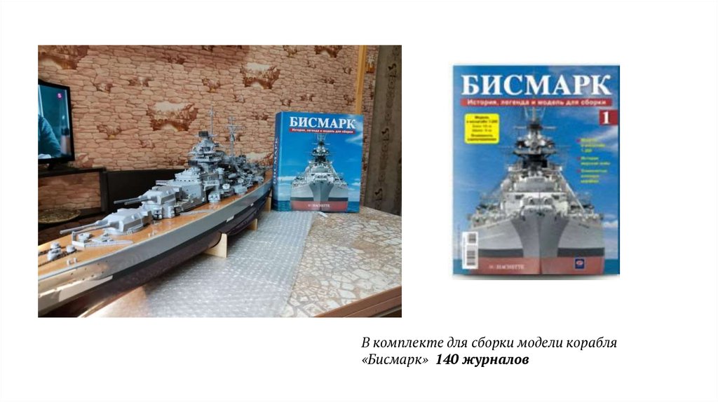 В комплекте для сборки модели корабля«Бисмарк» 140 журналов