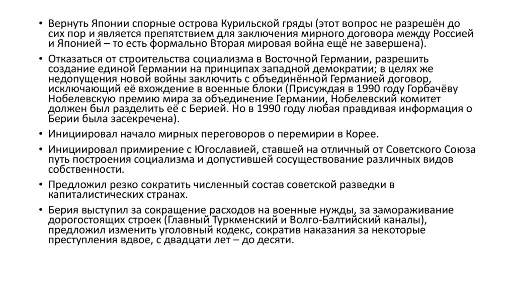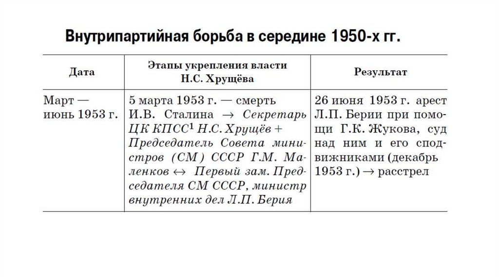• Берия был арестован и по приговору суда расстрелян в декабре 1953 г.