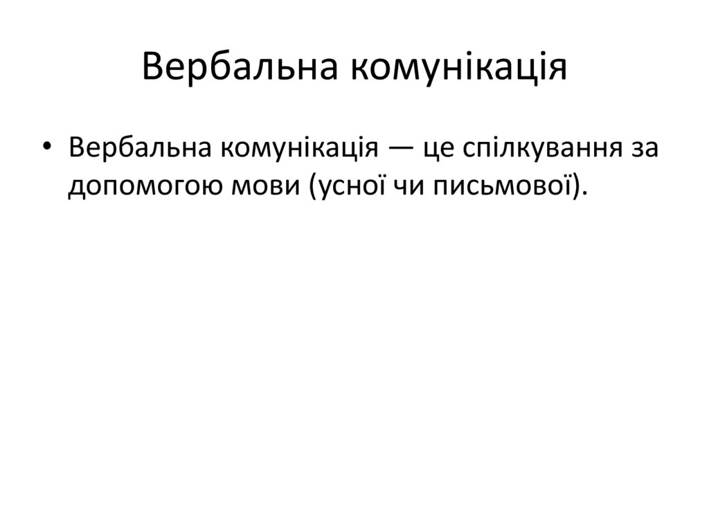 Вербальна комунікація• Вербальна комунікація — це спілкування за