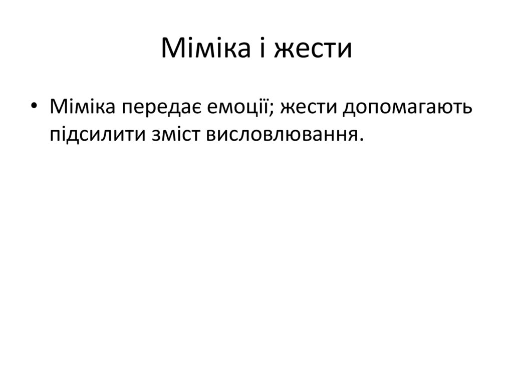 Міміка і жести• Міміка передає емоції; жести допомагають