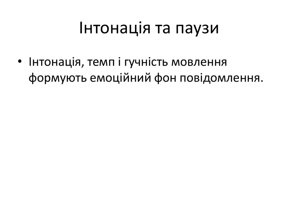 Інтонація та паузи• Інтонація, темп і гучність мовлення