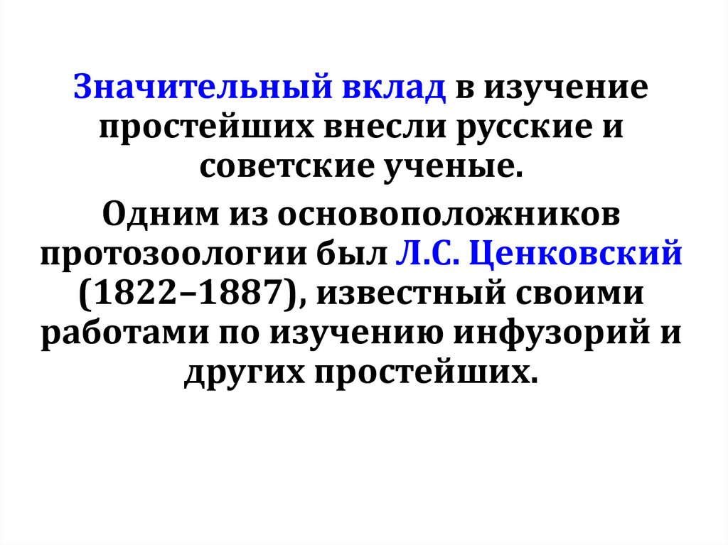 Значительный вклад в изучениепростейших внесли русские и