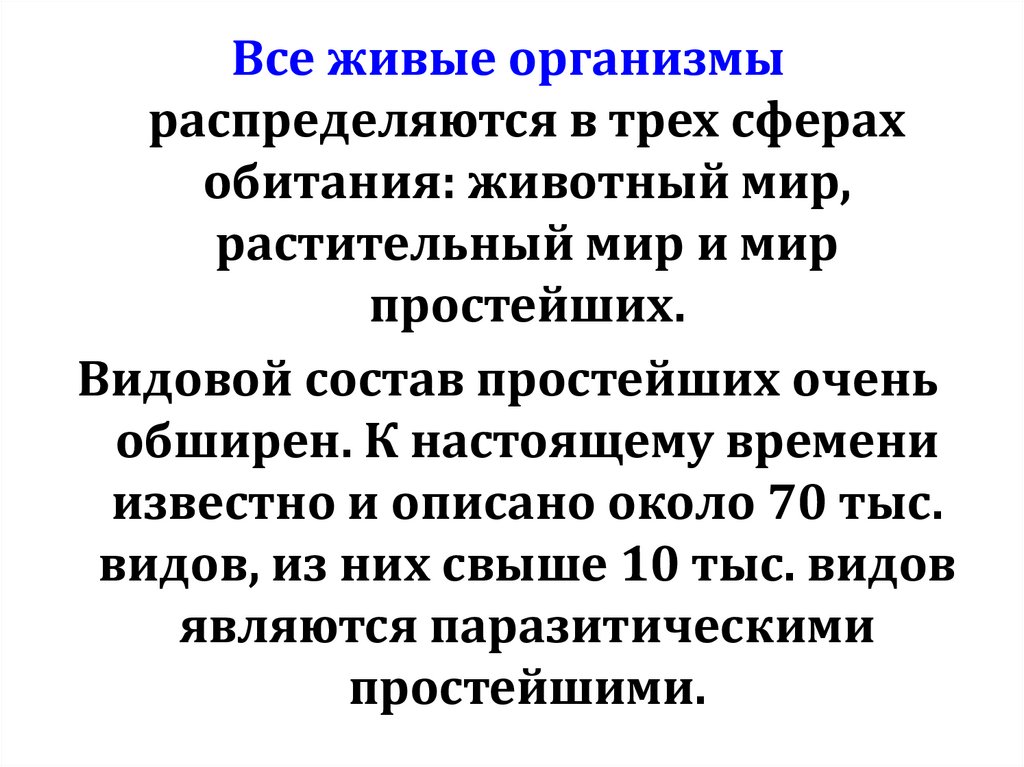 Видовой состав простейших очень