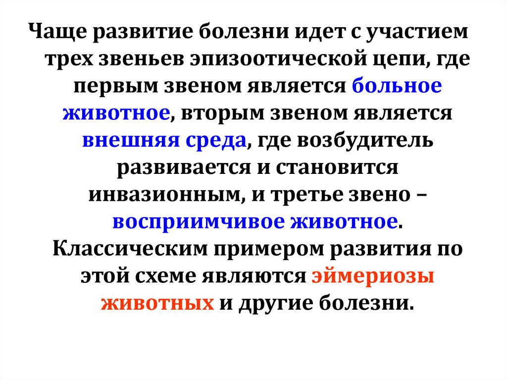 развитие также идет с участием трехзвеньев эпизоотической цепи.