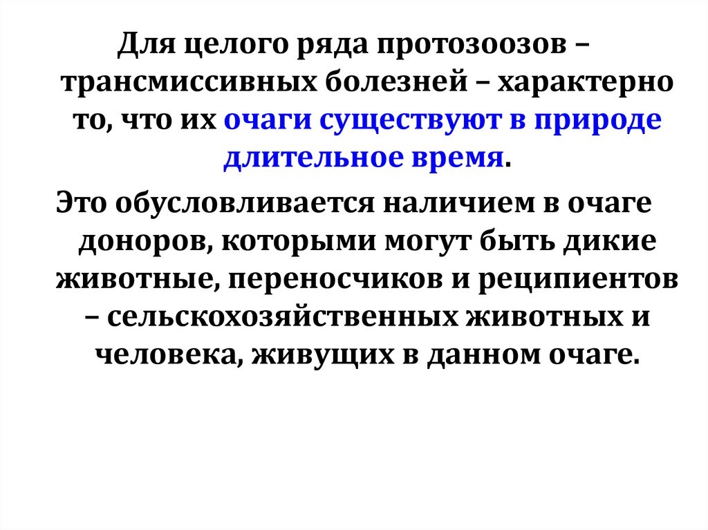 Для целого ряда протозоозов –трансмиссивных болезней – характерно