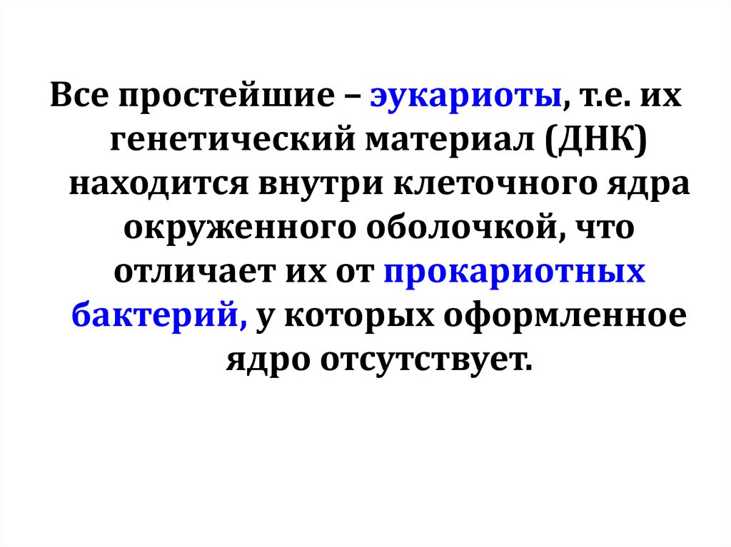 Все простейшие – эукариоты, т.е. ихгенетический материал (ДНК)