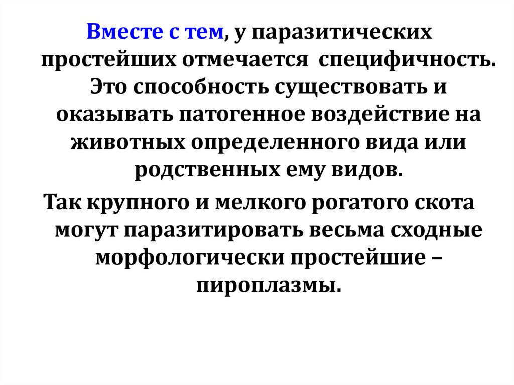 Вместе с тем, у паразитическихпростейших отмечается специфичность.