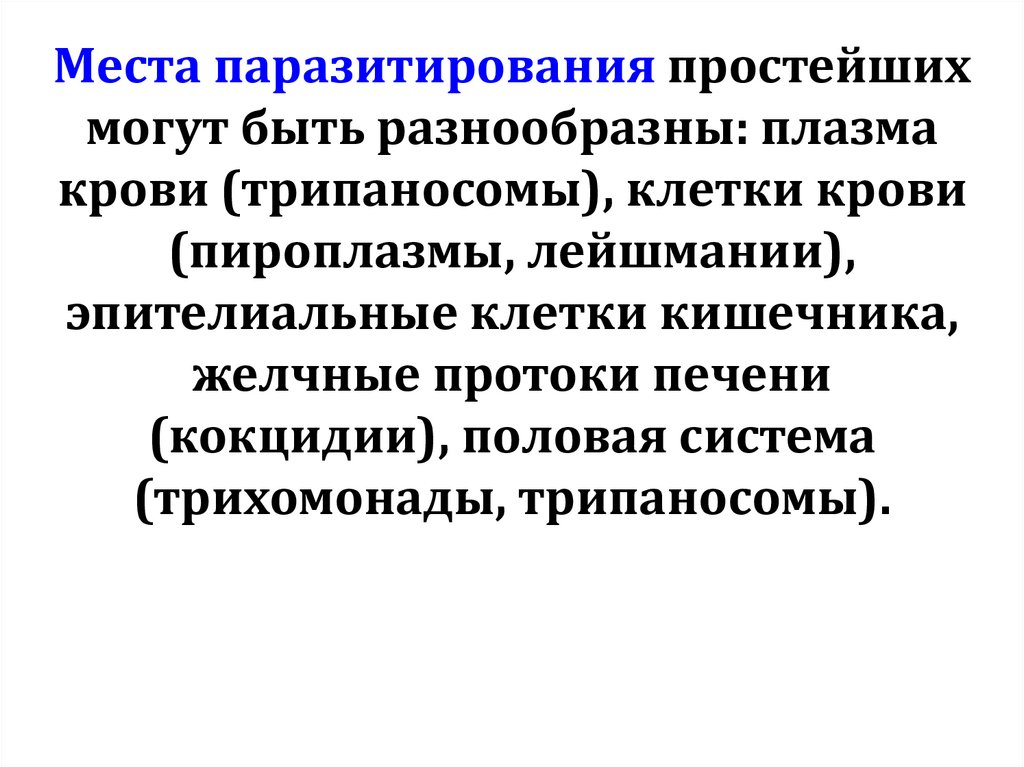 Места паразитирования простейшихмогут быть разнообразны: плазма