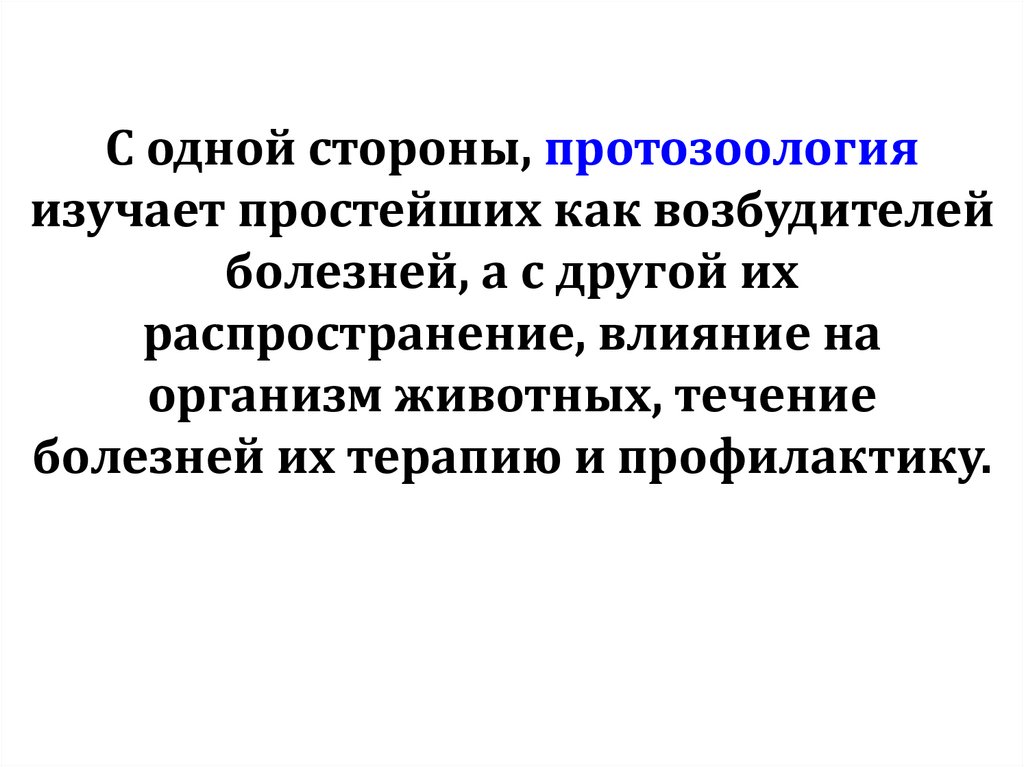С одной стороны, протозоологияизучает простейших как возбудителей