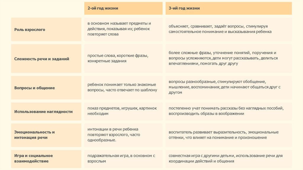 1–2 года и 2–3 лет. Большое внимание уделяется непосредственному общению