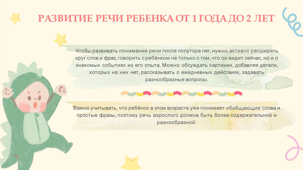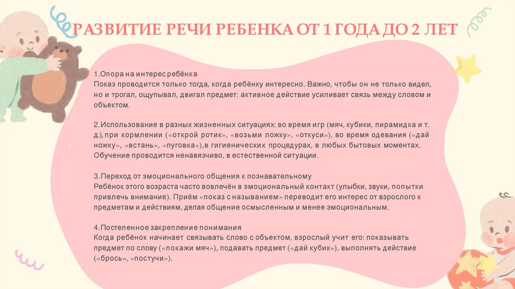РАЗВИТИЕ РЕЧИ РЕБЕНКА ОТ 1 ГОДА ДО 2 ЛЕТЧтобы развивать понимание речи после полутора лет, нужно активно расширять
