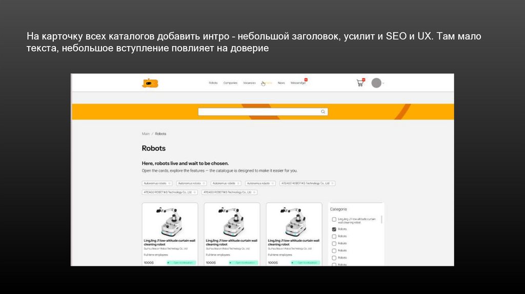 На карточку робота добавить отзывы и блок FAQ – это поднимет SEO и закроет возражения5.
