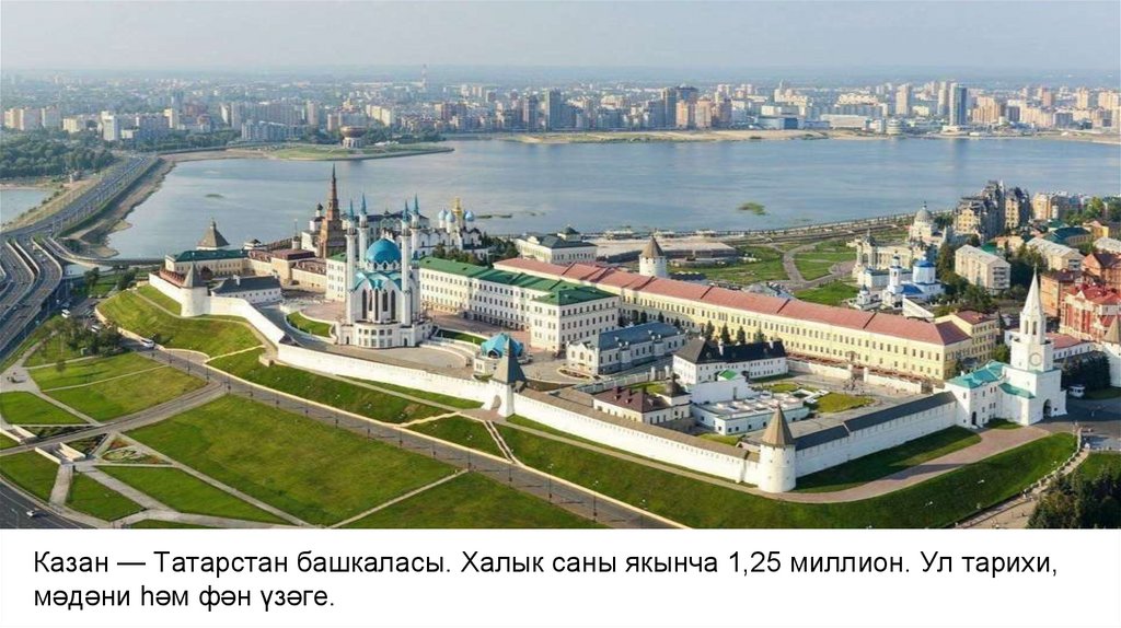 Казан — Татарстан башкаласы. Халык саны якынча 1,25 миллион. Ул тарихи,