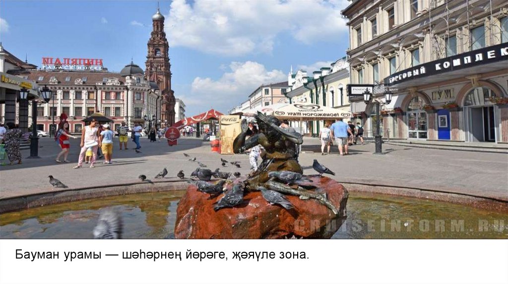 Бауман урамы — шәһәрнең йөрәге, җәяүле зона.