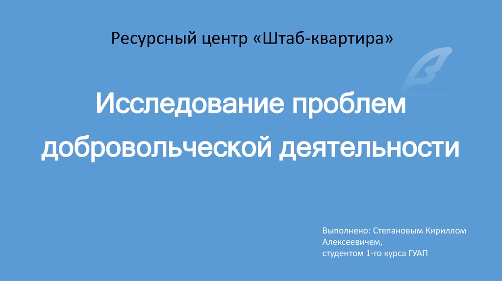 Ресурсный центр «Штаб-квартира»Исследование проблем