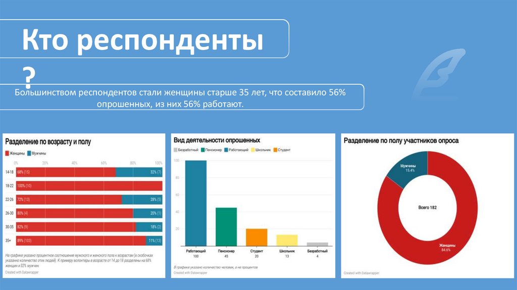 Большинством респондентов стали женщины старше 35 лет, что составило 56%