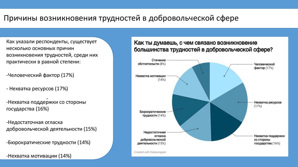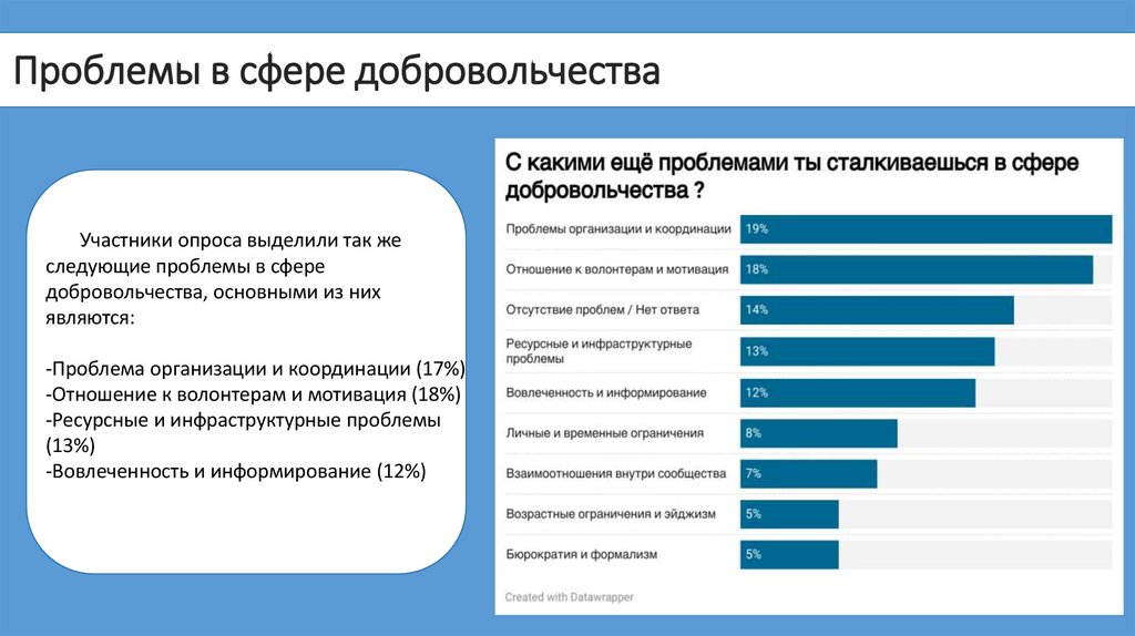 Проблемы в сфере добровольчестваУчастники опроса выделили так же