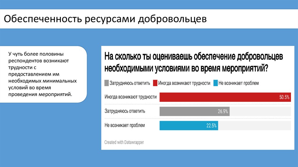 Обеспеченность ресурсами добровольцевУ чуть более половины