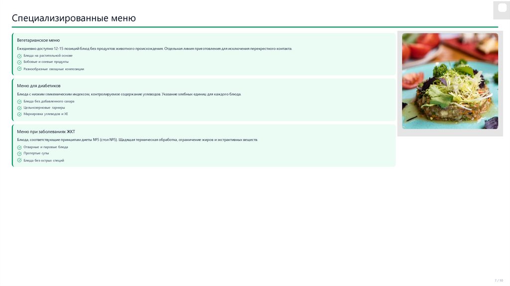 Специализированные менюВегетарианское меню