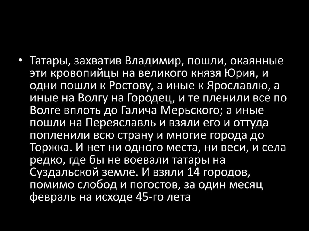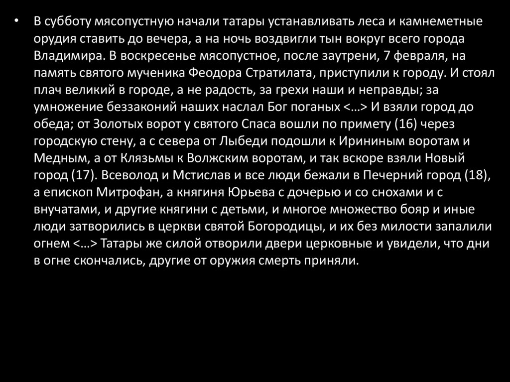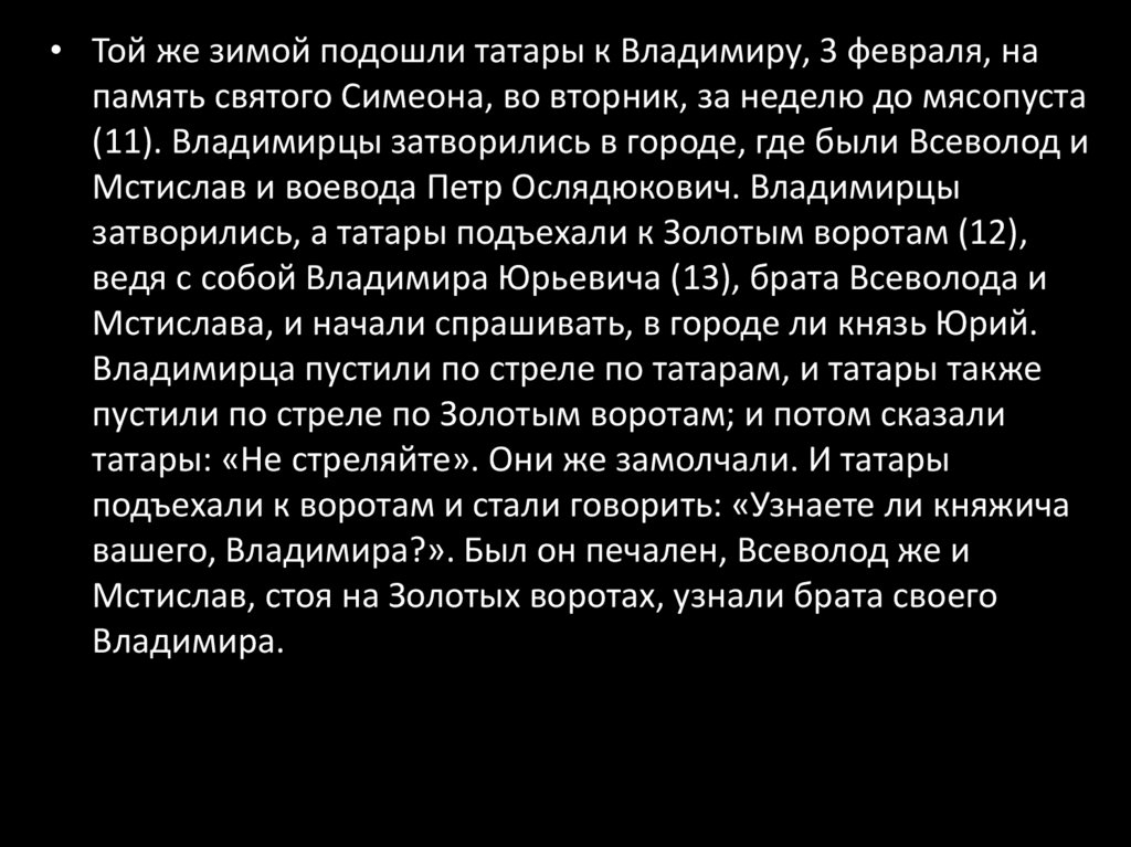 • Той же зимой подошли татары к Владимиру, 3 февраля, напамять святого Симеона, во вторник, за неделю до мясопуста