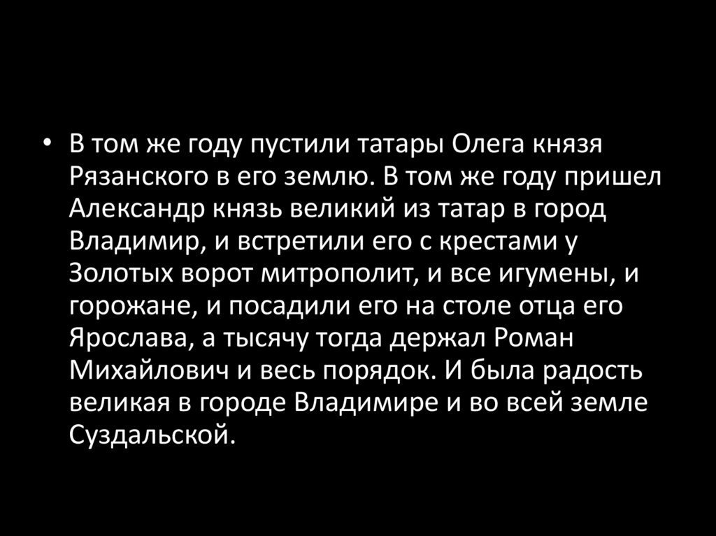 • В том же году пустили татары Олега князяРязанского в его землю. В том же году пришел