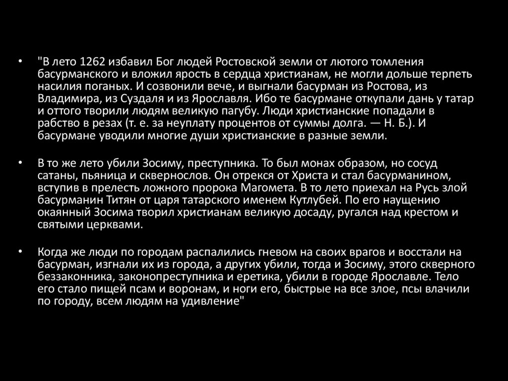 "В лето 1262 избавил Бог людей Ростовской земли от лютого томления