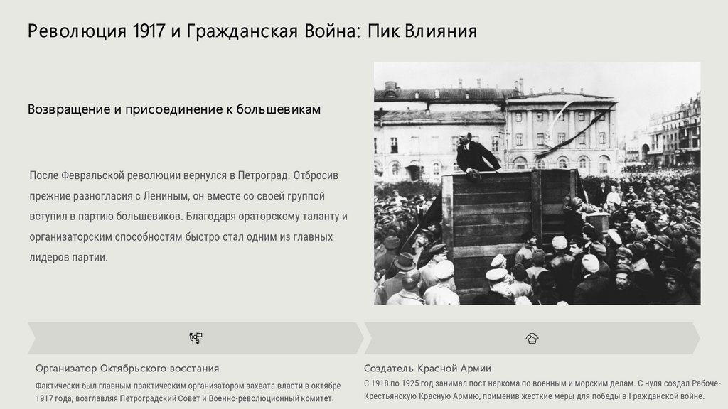 1917 года, возглавляя Петроградский Совет и Военно-революционный комитет.