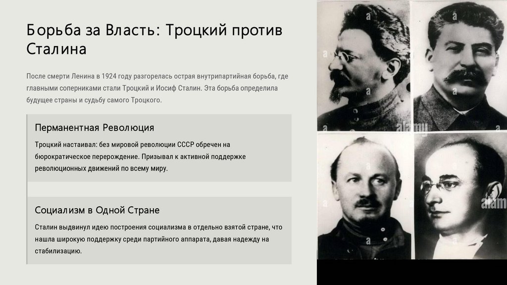 После смерти Ленина в 1924 году разгорелась острая внутрипартийная борьба, где