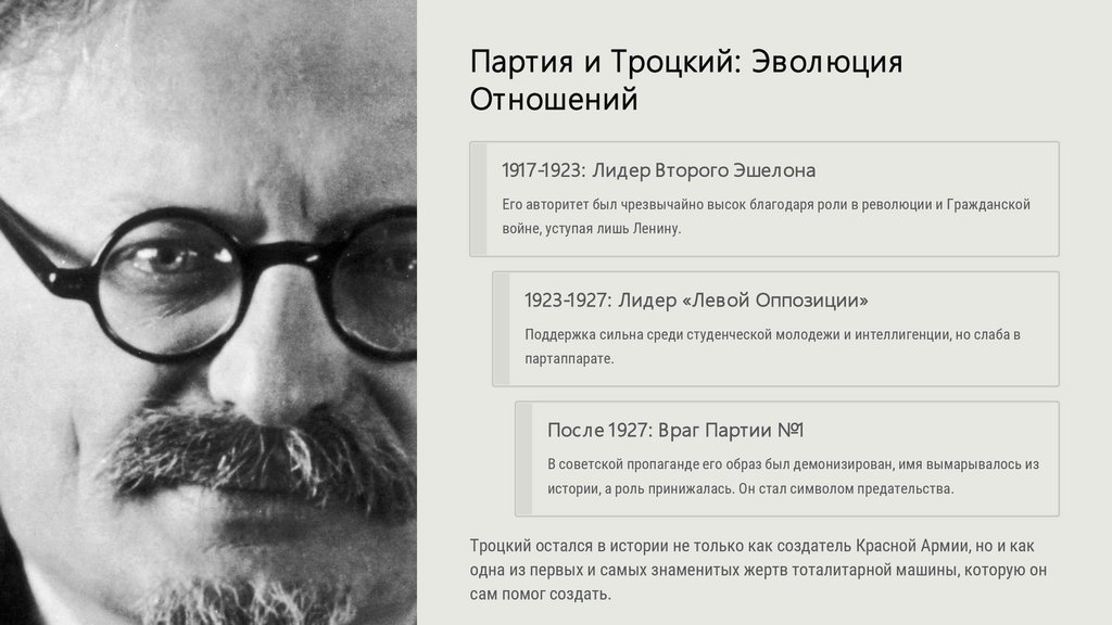 Интересный факт: До 1917 года Троцкий был известен как "внефракционный социал-демократ", пытаясь примирить большевиков и
