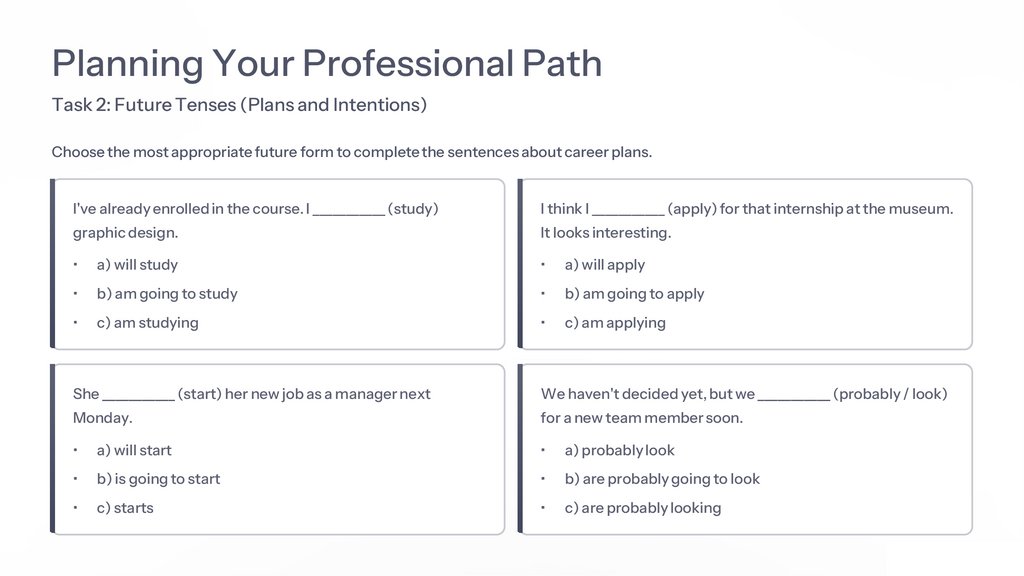 Planning Your Professional PathTask 2: Future Tenses (Plans and Intentions)