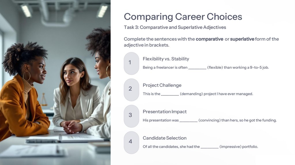 Comparing Career ChoicesTask 3: Comparative and Superlative Adjectives