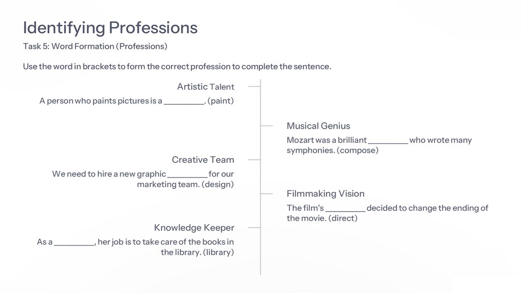 Identifying ProfessionsTask 5: Word Formation (Professions)