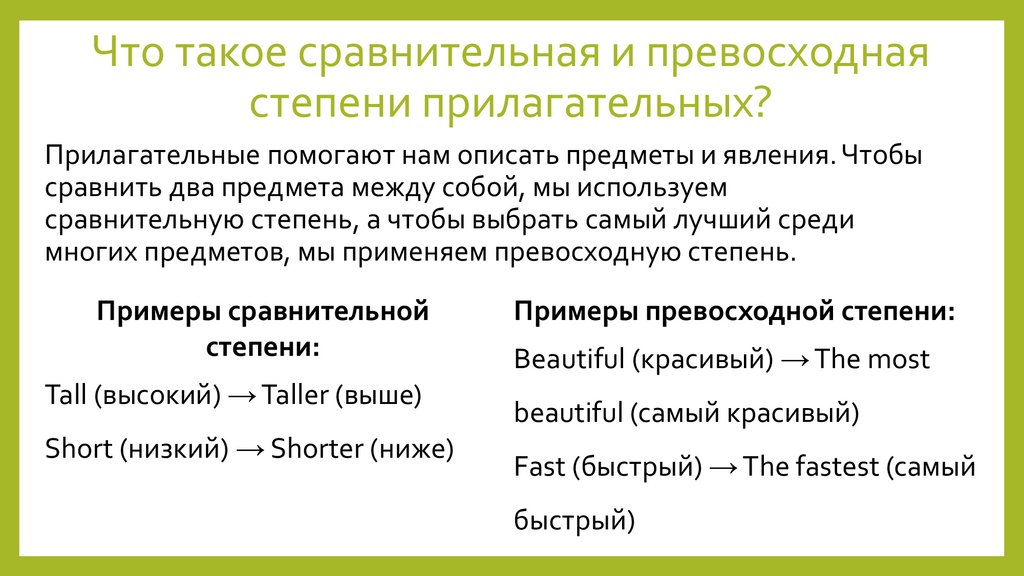 Что такое сравнительная и превосходнаястепени прилагательных?