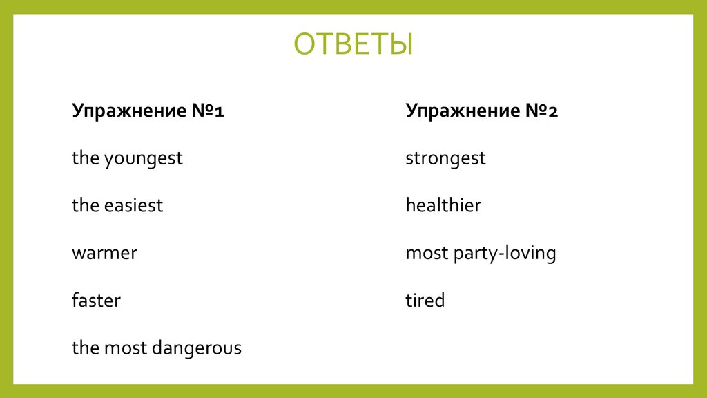 • Easy (легкий) → Easier (легче), easiest (самый легкий)