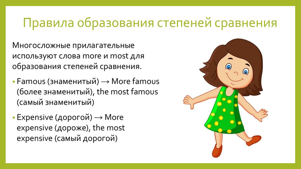 • Tall (высокий) → Taller (выше), the tallest (самый высокий)