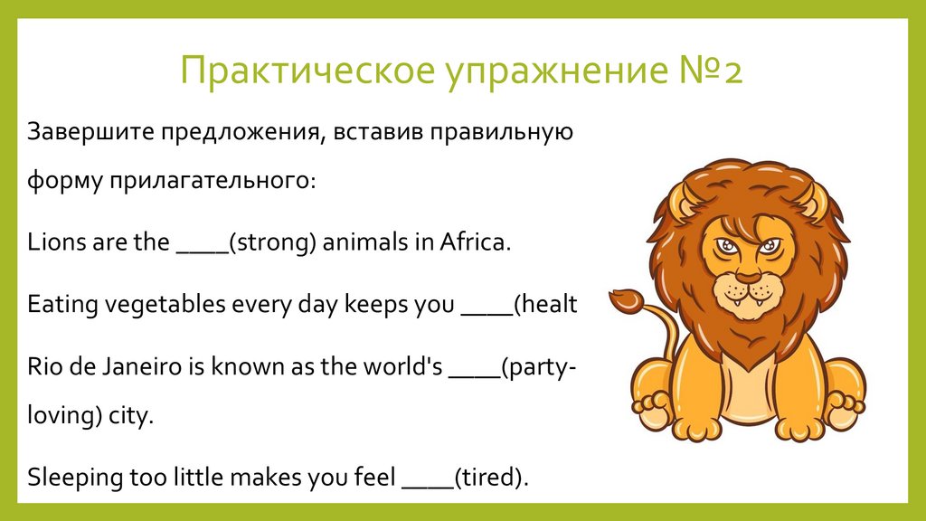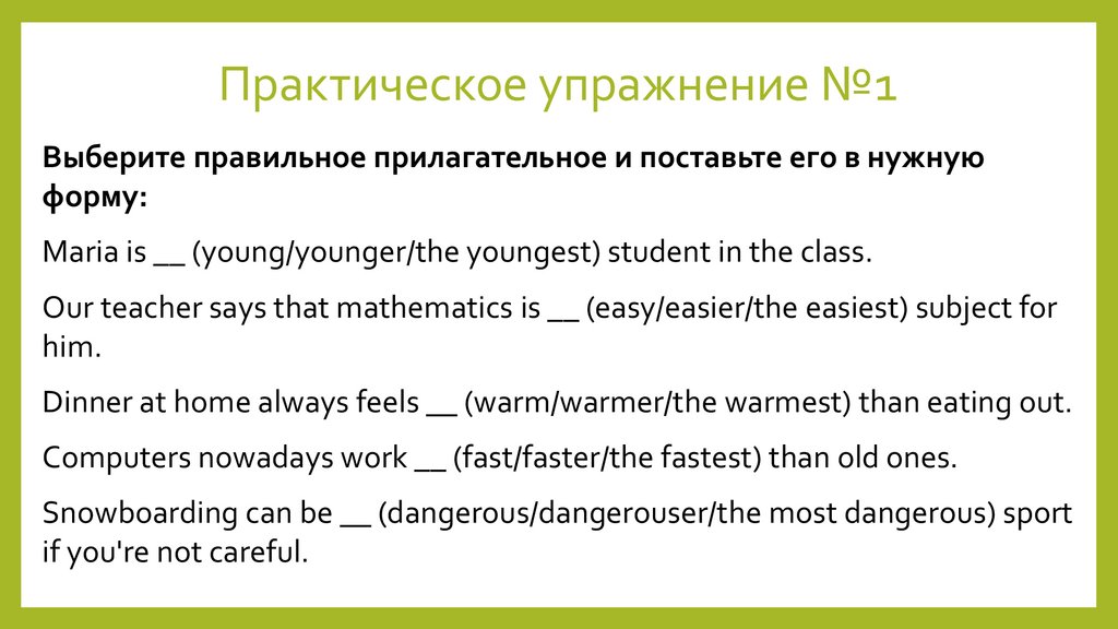 Практическое упражнение №1Выберите правильное прилагательное и поставьте его в нужную