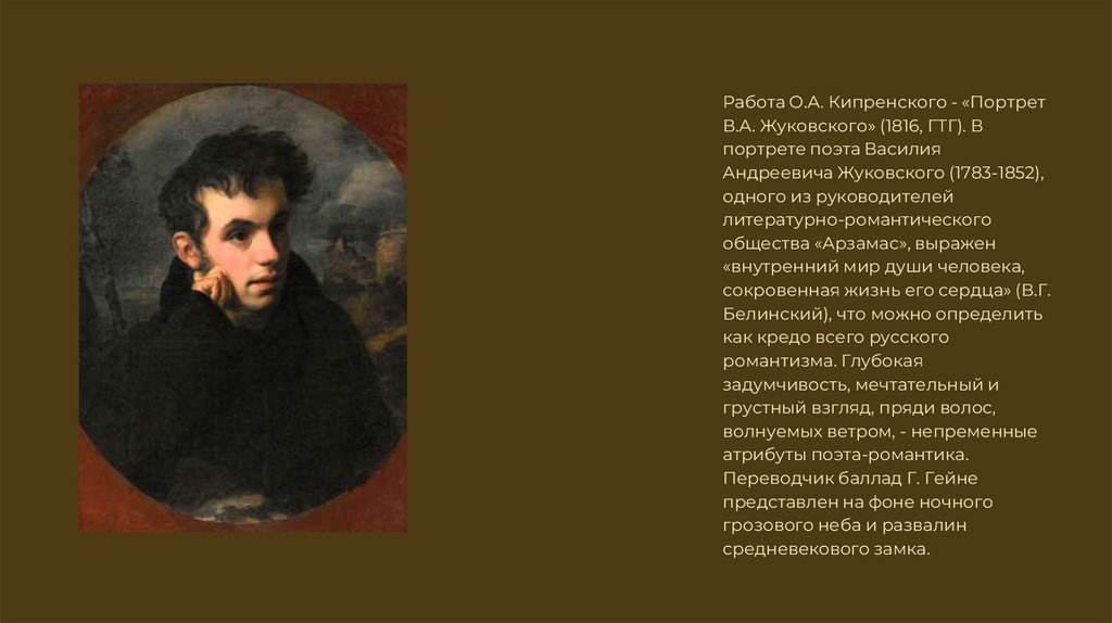 Работа О.А. Кипренского - «ПортретВ.А. Жуковского» (1816, ГТГ). В