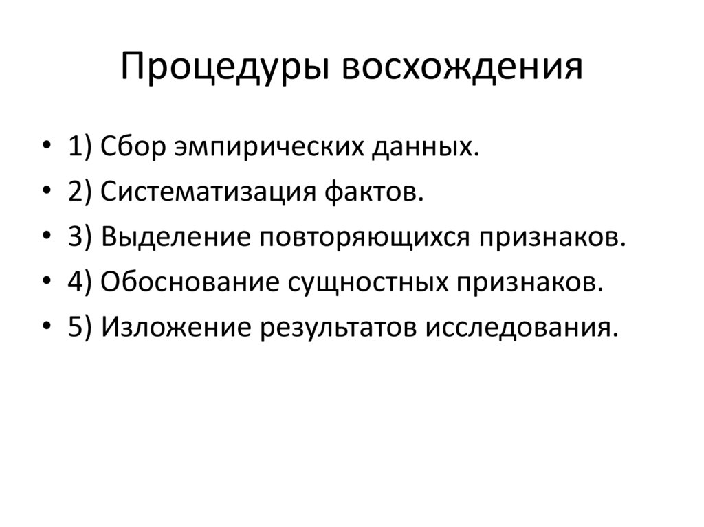 Процедуры восхождения• 1) Сбор эмпирических данных.