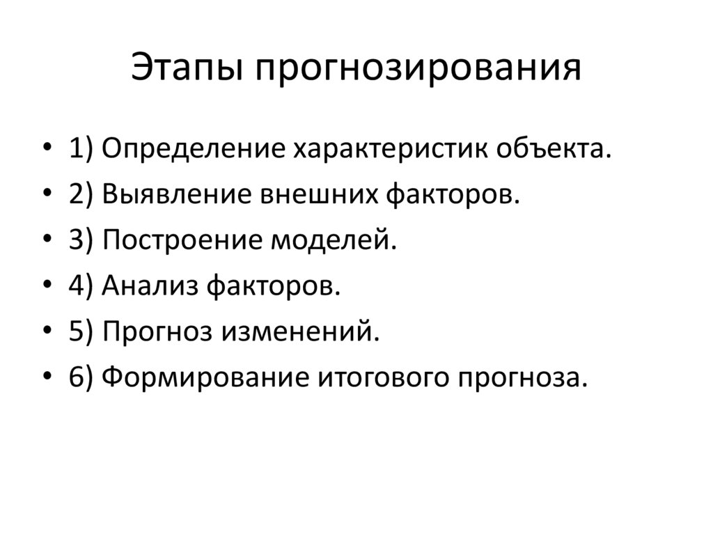 Этапы прогнозирования• 1) Определение характеристик объекта.