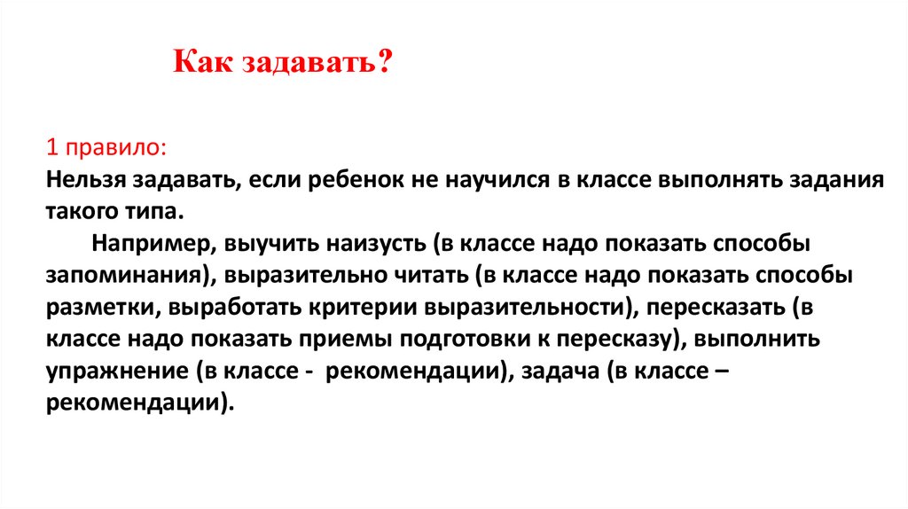 Нельзя задавать, если ребенок не научился в классе выполнять задания