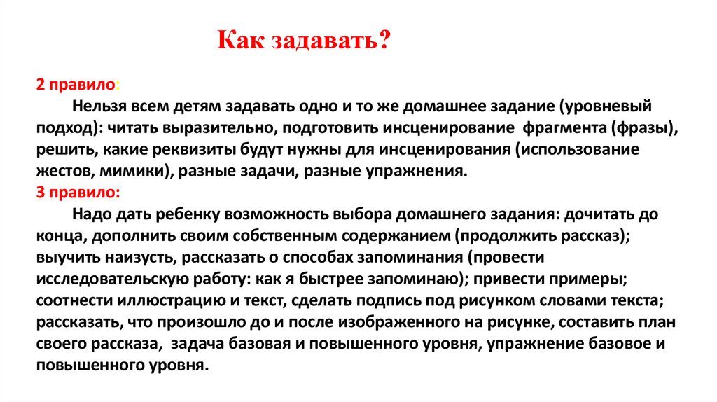 Нельзя всем детям задавать одно и то же домашнее задание (уровневый