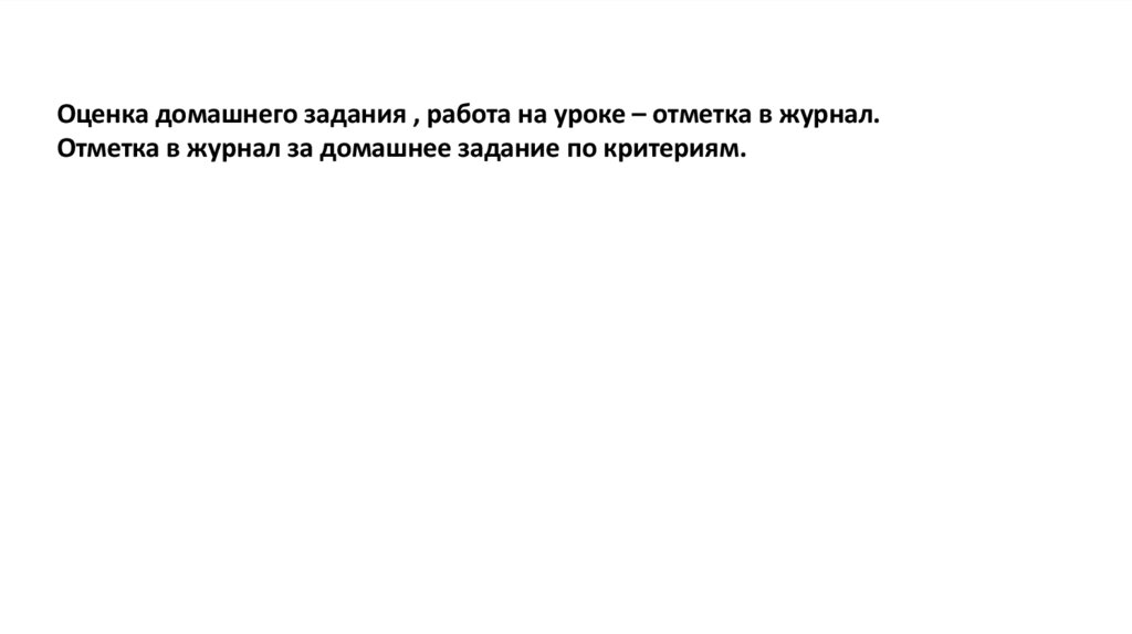 Оценка домашнего задания , работа на уроке – отметка в журнал.Отметка в журнал за домашнее задание по критериям.