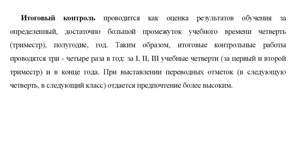 триместр) и в конце года. При выставлении переводных отметок (в следующую
