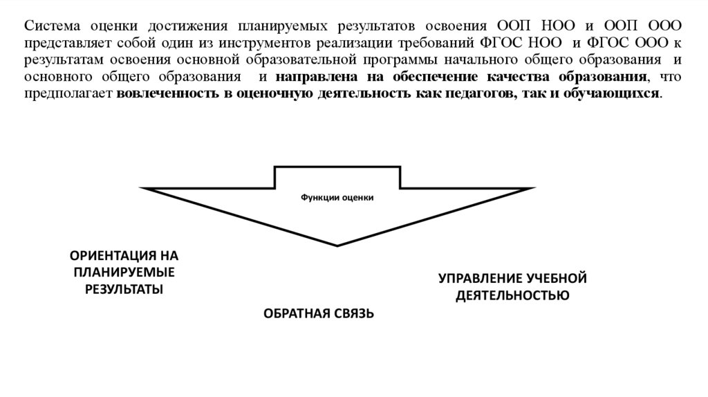 Система оценки достижения планируемых результатов освоения ООП НОО и ООП ОООпредставляет собой один из инструментов реализации требований ФГОС НОО и ФГОС ООО к