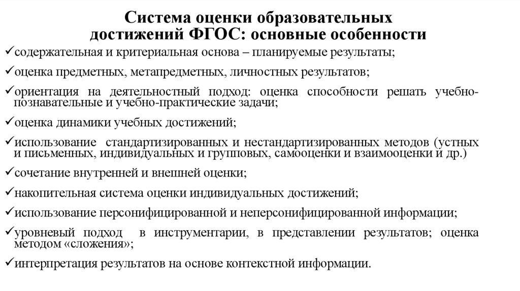 Система оценки образовательныхдостижений ФГОС: основные особенности